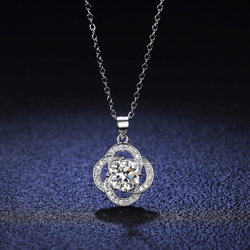 1ct Four-leaf Clover Design Bling 925 Sterling Silver Necklace for Women Environmental Friendly GRA Moissanite Diamond Unique